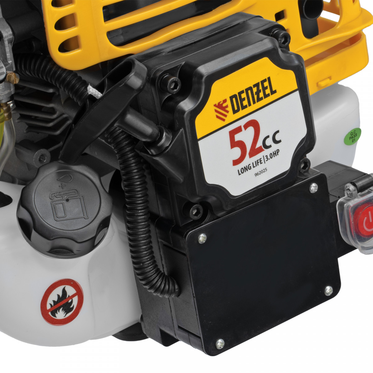Триммер бензиновый DT-52E, 52 см3, неразъемная штанга, электростартер, состоит из 2 частей Denzel