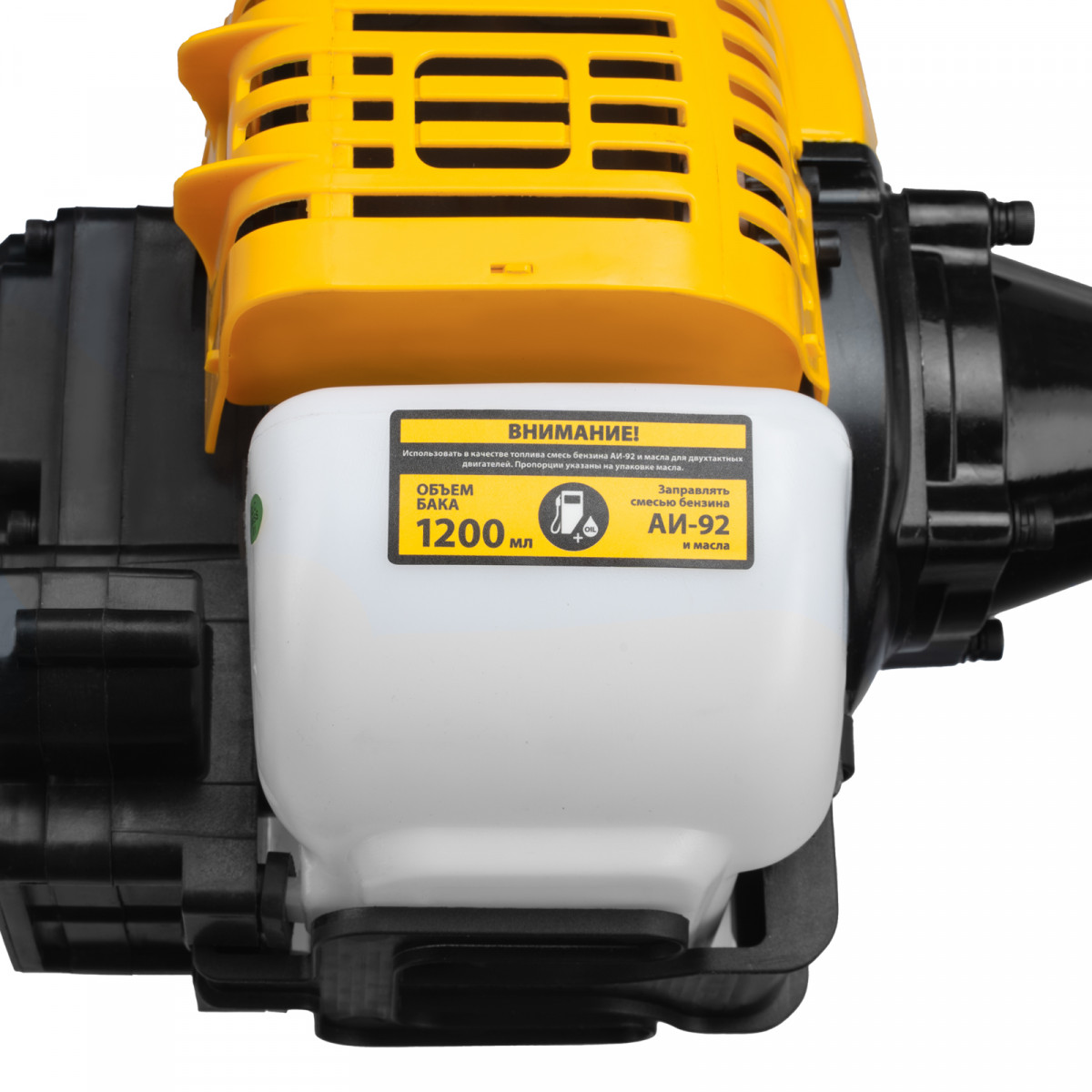 - Безопасность — блокиратор курка газа препятствует случайному запуску двигателя, прочный пластиковый кожух защищает пользователя от летящей травы, грязи и прочих твердых частиц.
