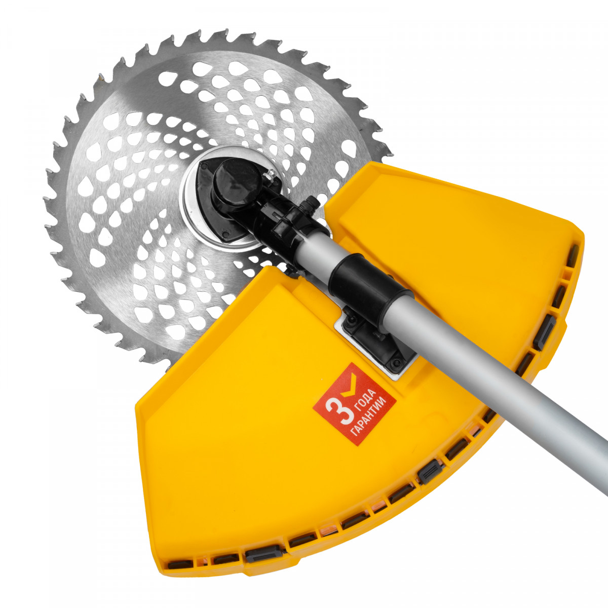 - Автоматическая подрезка лески — нож на кожухе укорачивает концы корда до нужной длины, что предотвращает перегрузку двигателя.