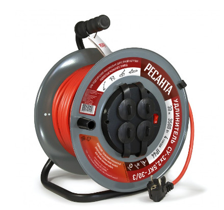 Удлинитель силовой на металлической катушке СУ-3х2,5КГ-30/3 с выключателем 4 розетки IP44 РЕСАНТА