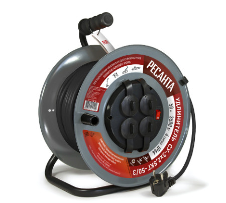 Удлинитель силовой на металлической катушке СУ-3х2,5КГ-50/3 с выключателем 4 розетки IP44 РЕСАНТА