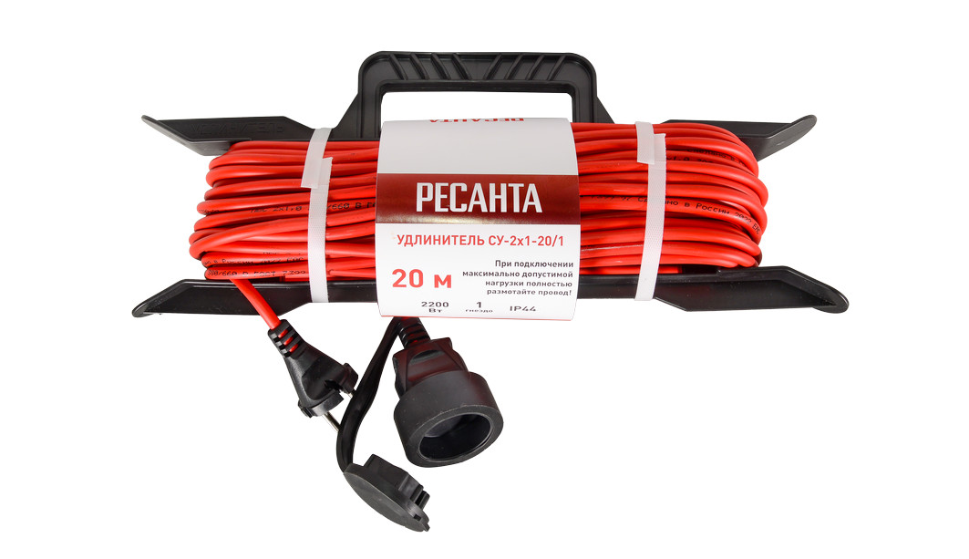 Силовой удлинитель отличается универсальностью, поскольку может использоваться на промышленных объектах, строительных площадках и в бытовых условиях, особенно на приусадебных территориях частных домов. Незаменим он в условиях, когда нет возможности подключить электроинструмент к стационарной розетке.Основу силового удлинитель составляет провод ПВС 2×1 мм². Его длина – 20 м, что дает возможность иметь источник электричества на отдаленном расстоянии. В комплект также входит вилка, розетка, которая закрывается крышкой. Для удобства транспортировки и хранения предусмотрена рама с ручкой. На нее легко намотать провод, он не прогибается, исключены случайные повреждения.Мощность провода Ресанта СУ-2х1-20/1 составляет 2,2 кВт, поэтому можно подключать триммер, перфоратор, болгарку или другой электроинструмент. При использовании удлинителя в смотанном виде мощность подключённых приборов не должна превышать 1,1 кВт, иначе провод будет греться, что может привести к его деформации.