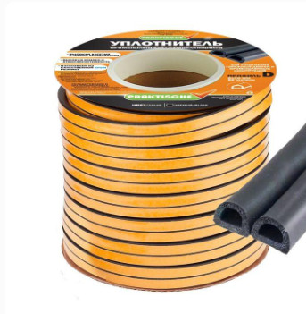 Уплотнитель самоклеящийся промышленный PRAKTISCHE HOME 12х10мм D-50 м черный ЦЕНА ЗА 1 п.м. в 1 слой