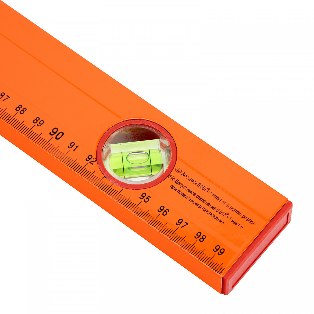 Алюминиевый уровень Sparta 330295 длиной 1000 мм, желтого цвета, с 3 глазками и линейкой, будет полезен при проведении строительных, отделочных, облицовочных и других работ, требующих особой точности. Уровень с тремя глазками поможет определить отклонение от горизонтальной и вертикальной плоскости, выставить угол 45°, измерить предметы и т. д.