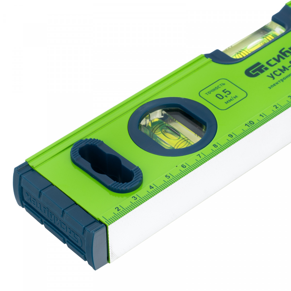 Алюминиевый фрезерованный уровень Сибртех УСМ-0,5-300 34111 длиной 300 мм, магнитный, с 3 глазками, поможет найти отклонения от горизонтальной и вертикальной плоскостей и угла 45 градусов. Инструмент незаменим при осуществлении строительных и ремонтных работ, т.к. обеспечивает высокую точность работы.,Для определения отклонения вертикали 90 градусов необходимо использовать пузырьковую ампулу только в верхнем положении уровня. Только базовая поверхность является рабочей (противоположная ампуле 180 градусов).