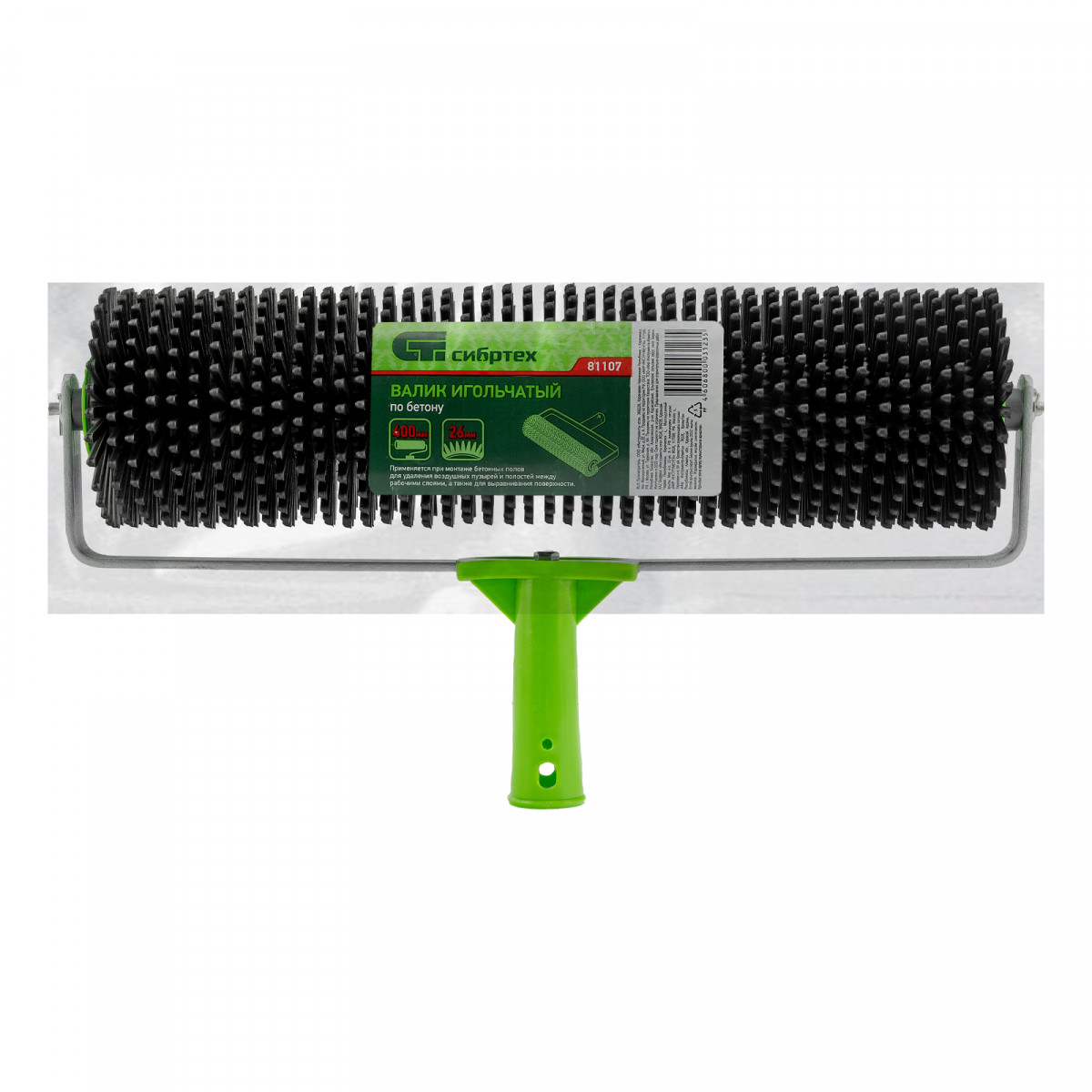 Игольчатый валик по бетону Сибртех 81107 шириной 400 мм применяется для заливки бетонных стяжек пола и необходим во время проведения ремонтных и строительных работ. Иглы длиной 26 мм позволяют качественно выровнять поверхность и удалить воздушные пузыри.