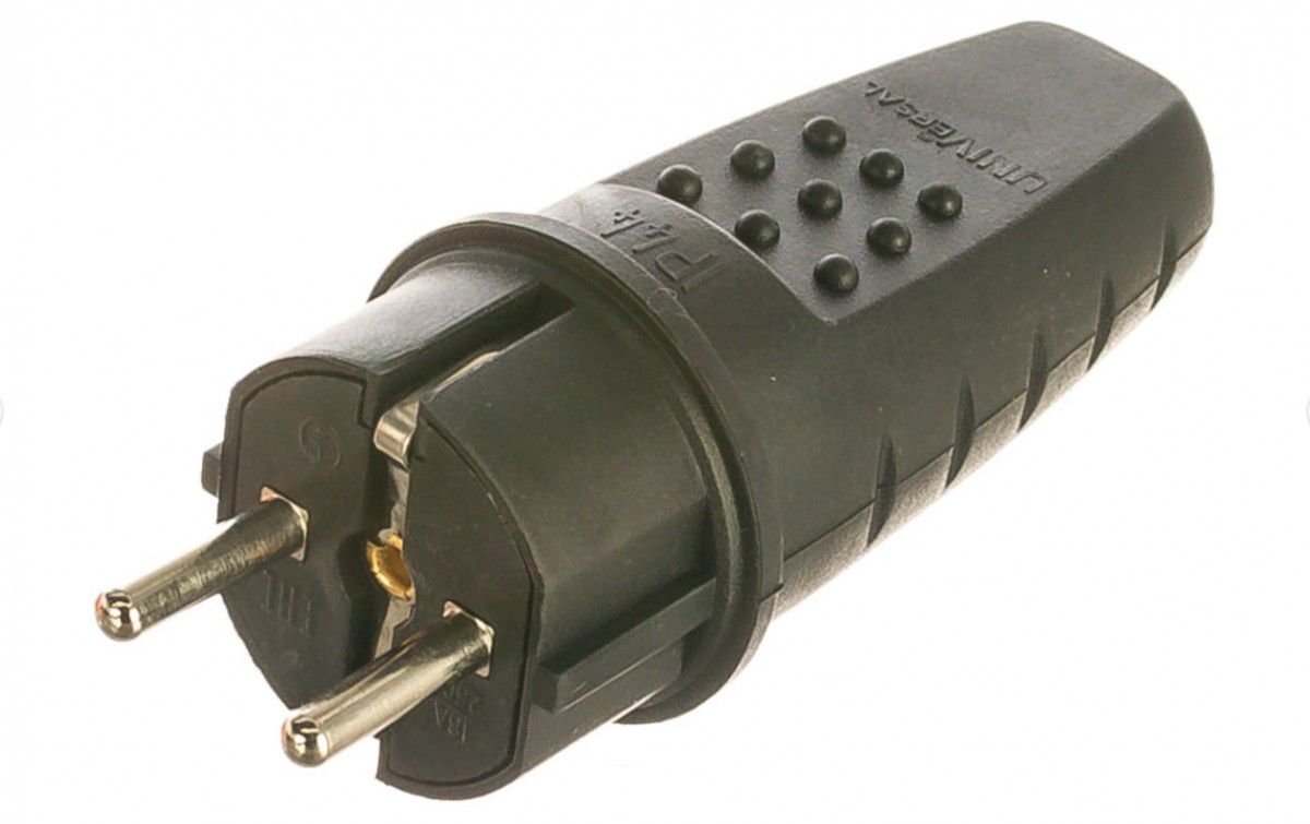 Вилка электрическая прямая однофазная 16А 250В IP44 с заземлением каучук еврослот UNIVersal 602227