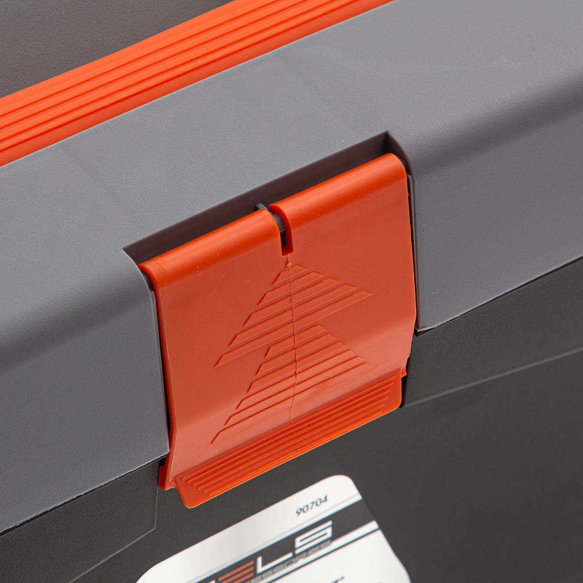 Ящик для инструмента Stels 90704 из пластика, длиной 17", габаритами 420 х 220 х 180 мм, предназначен для переноски и хранения инструментов, хозяйственных мелочей, рыболовных снастей. Крышка надежно закрывается, поэтому содержимое не рассыплется. Встроенные в крышку отделения обеспечивают быстрый доступ к крепежам и другим необходимым предметам. Большой ящик для хранения инструментов будет полезен дома, на даче, в гараже и на рыбалке.