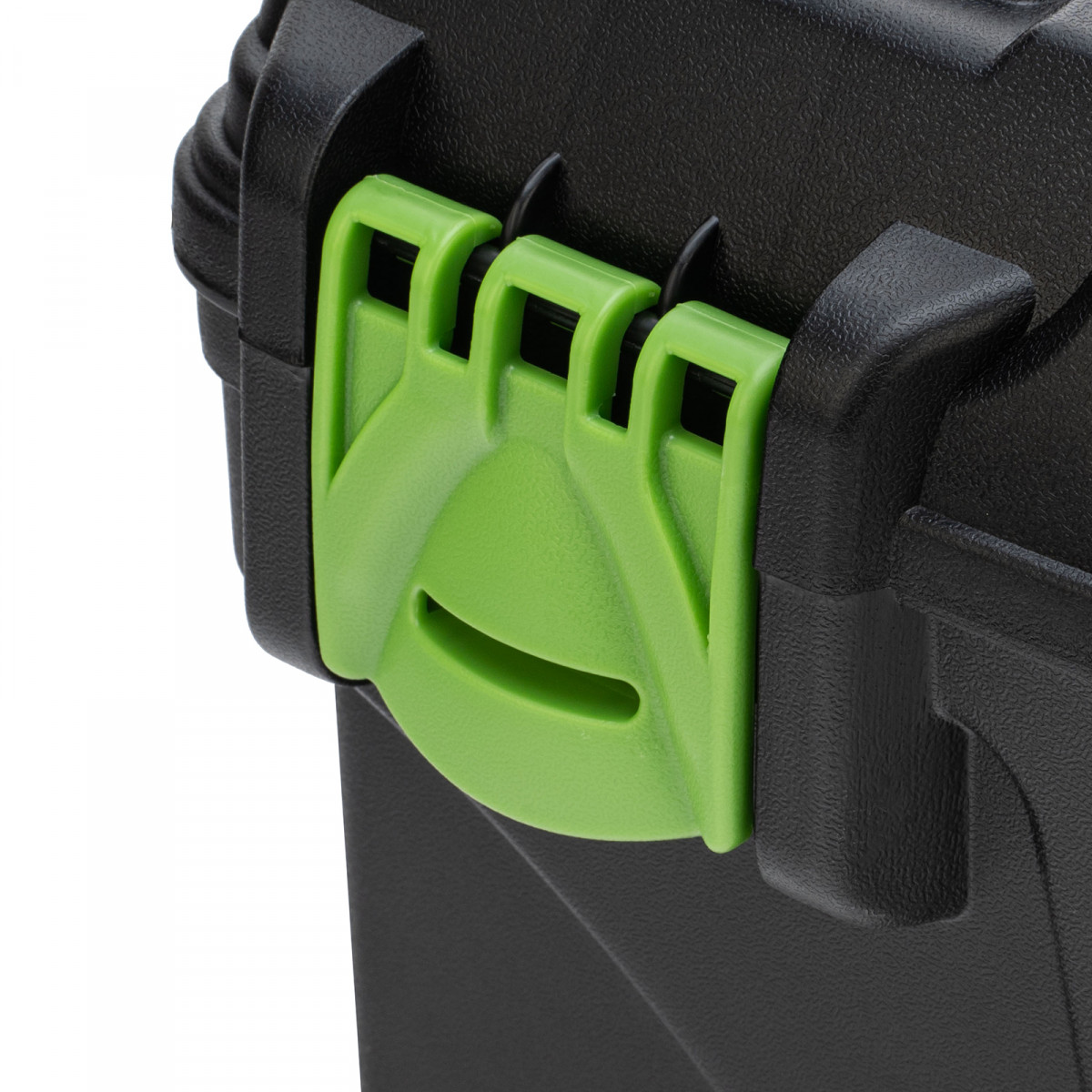 - Усиленная конструкция — замки и верхняя крышка установлены на 3-рядные петли, поэтому ящик выдерживает значительный вес.