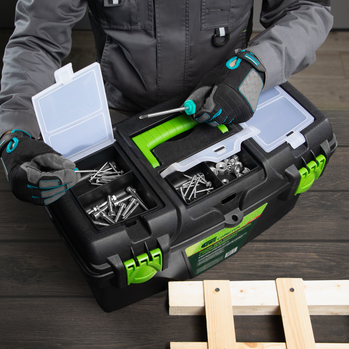 • Удобное хранение крепежа и мелких деталей — в крышке имеются органайзеры.