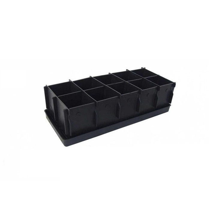 Современные ящики для рассады PROTEX включают в себя поддон и перегородки. Именно поэтому они занимают минимум места при хранении — перегородки складываются в ящик, а ящики вставляются один в другой.Благодаря небольшим размерам, ящики для рассады PROTEX можно установить на самый узкий подоконник.Размер – 410*180*115 мм.Толщина стенок 1,5мм.