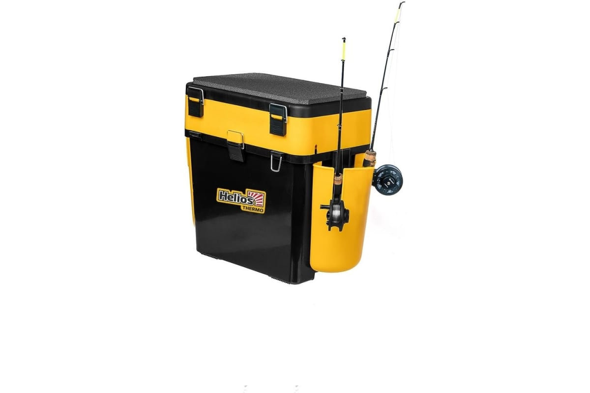Ящик Helios FishBox Thermo T-FB-T-19-8-BY с термоконтейнером, 19л/8.5л, черный/желтый 321705 подойдет как для зимней, так и для ходовой, береговой и морской рыбалки.