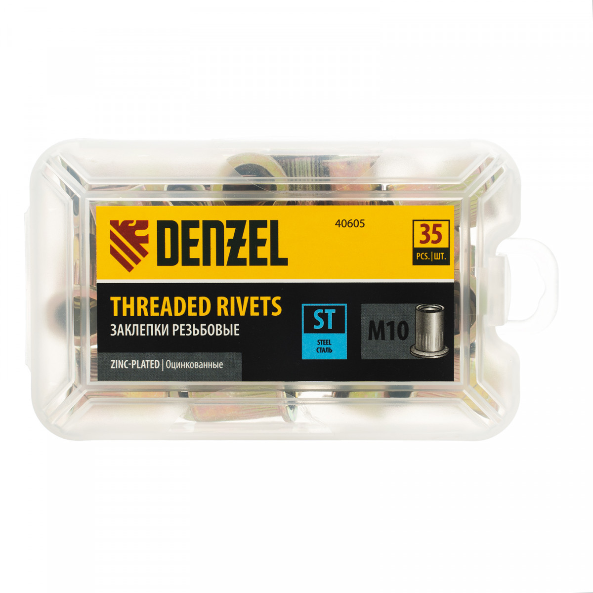 Заклепки резьбовые, стальные, оцинкованные, М10, пластиковый кейс, 35 шт. Denzel