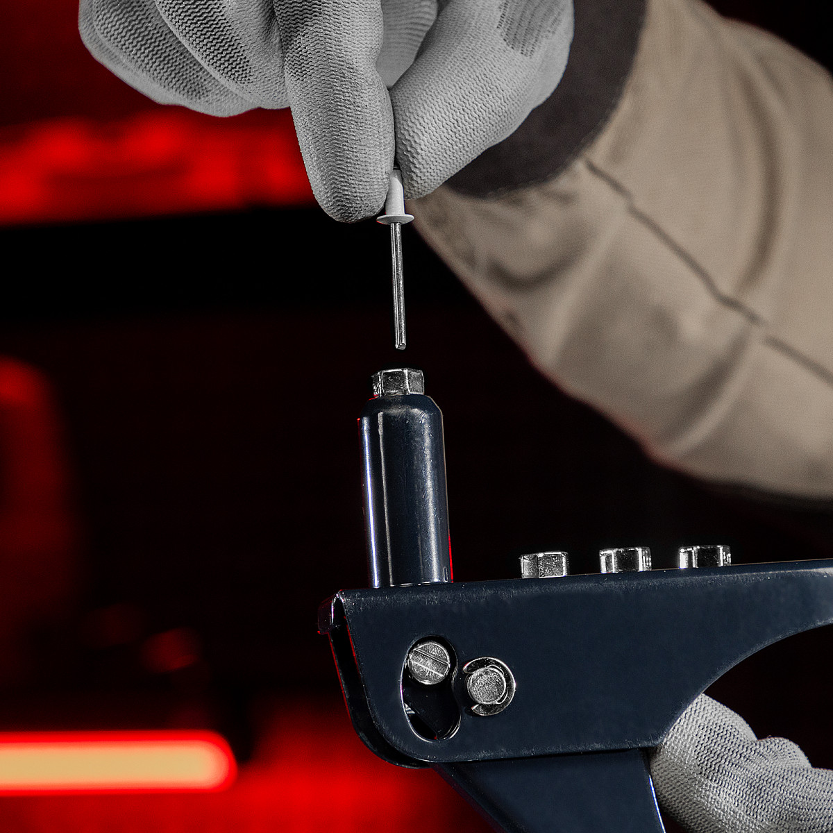 Заклепочник Матрикс 40524 длиной 250 мм используется с вытяжными заклепками диаметром от 2,4 до 4,8 мм. Инструмент применяется при работе с многослойным материалом и различными деталями из металла, пластика и т. д. В комплект входят сменные насадки для заклепок различного диаметра, фиксирующиеся на корпусе инструмента, поэтому их можно быстро менять при необходимости. Заклепочник будет полезен во время проведения строительных и ремонтных работ, пригодится также дома, в гараже или на даче.