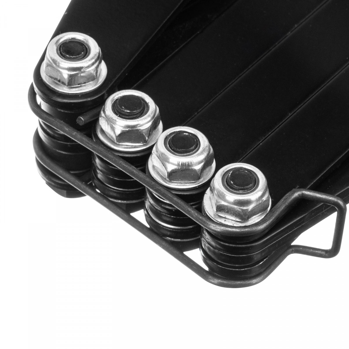 - Удобное хранение и транспортировка — прижимной механизм удерживается в сложенном состоянии при помощи металлической скобы.