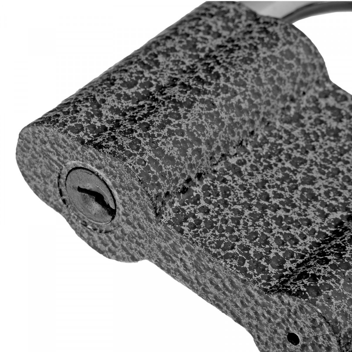 - Устойчивость к взлому — в замке установлен цилиндровый запорный механизм, дужку толщиной 11 мм из закаленной стали трудно спилить.