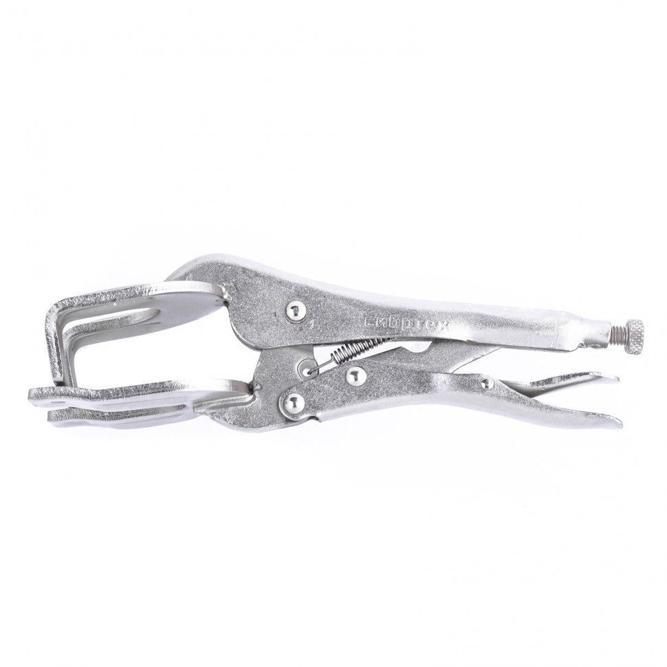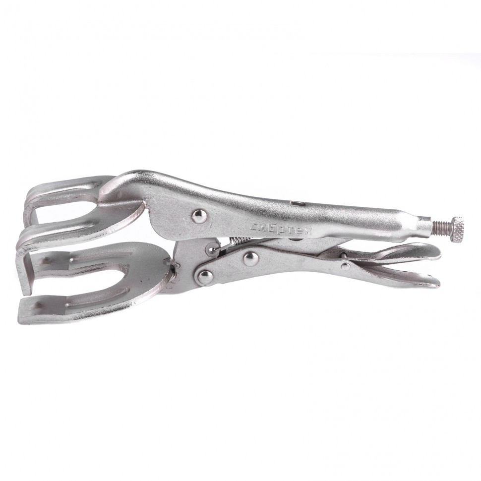 Двойной ручной зажим Сибртех 18429 длиной 225 мм используется для точечной фиксации деталей различной формы. Необходим во время проведения сварочных и слесарно-монтажных работ. Форма губок позволяет зажимать заготовки в двух точках одновременно, а запирающий механизм не дает им раскрыться.