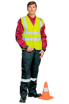 100% полиэфир Особенности: жилет сцентральной застежкой на липучку. Имеет световозвращающие полосы вертикальный и горизонтальных направлений. Окантован тесьмой.